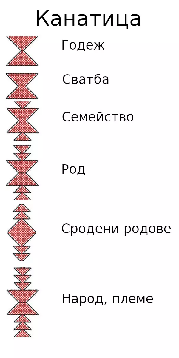 "Велика канатица" се получава при добавяне на още два триъгълника към "голяма Канатица", символизирайки единството на рода и народа.![]()