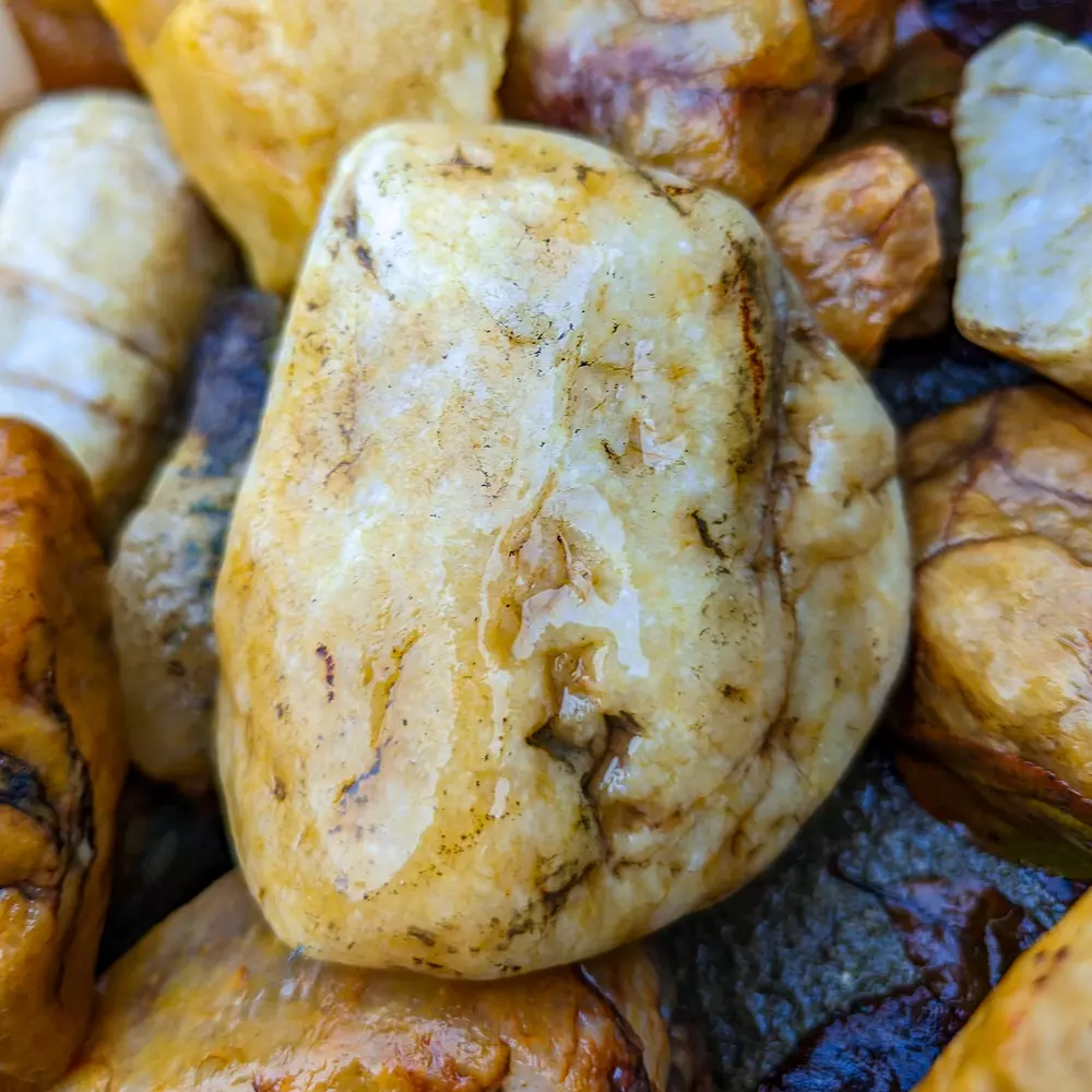 Цитрин: Златисто-жълт кварц, който често се свързва с богатство и креативност.