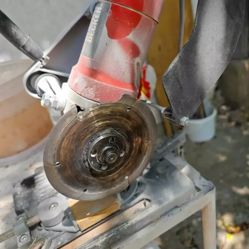 Така или иначе тогава вече имах малък електрически флекс, купих от железарията и някакъв обикновен диск с диамантено покритие за рязане на камъни.