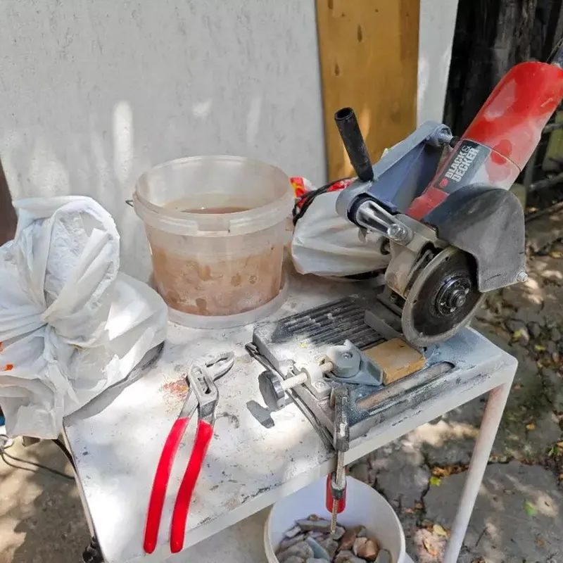 Шлифовалка с диамантени борчета използвам основно за пробиване на отвори, коригиране на малки специфични проблеми и дефекти в камъните - проблеми, които не мога да оправя с другите ми 3 машини.